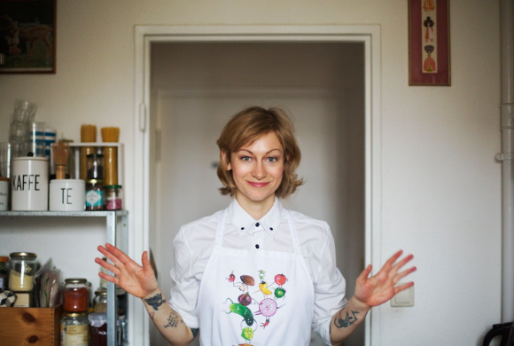 Zeitlose Küchenmode von Köchin Sophia Hoffmann. Zwei lustige Gemüse-Motive, fair produziert und auf GOTS-zertifizierter Bio-Baumwolle, one size fits all.